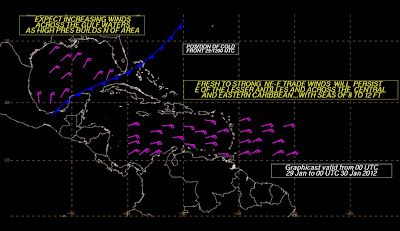 This morning, the cold front extends from the Florida Keys to the NW Yucatan. It is drifting slowly SE towards us and is dissipating. The next cold front may push off the Texas coast Thursday.